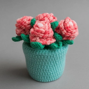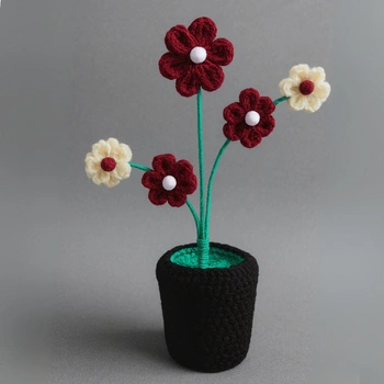 Ręcznie robiony bukiet kwiatów z włóczki w doniczce