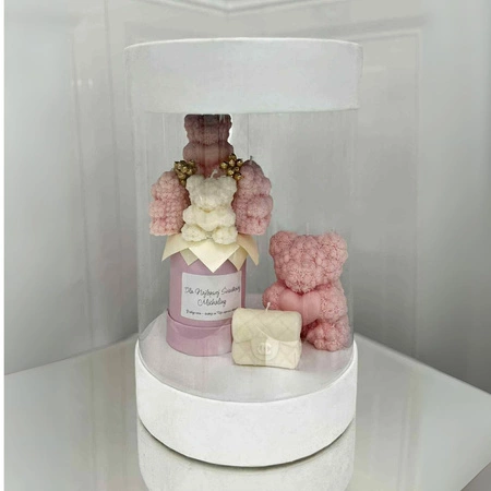 Box prezentowy z personalizowaną świecą sojową – misie z wosku sojowego