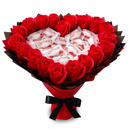 - Bukiet został wykonany w 100% ręcznie z najwyższej jakości materiałów, ten wyjątkowy bukiet z kwiatów mydlanych i słodyczy to doskonała alternatywa dla świeżych kwiatów. Zachwyca intensywnymi kolorami oraz pysznymi dodatkami.