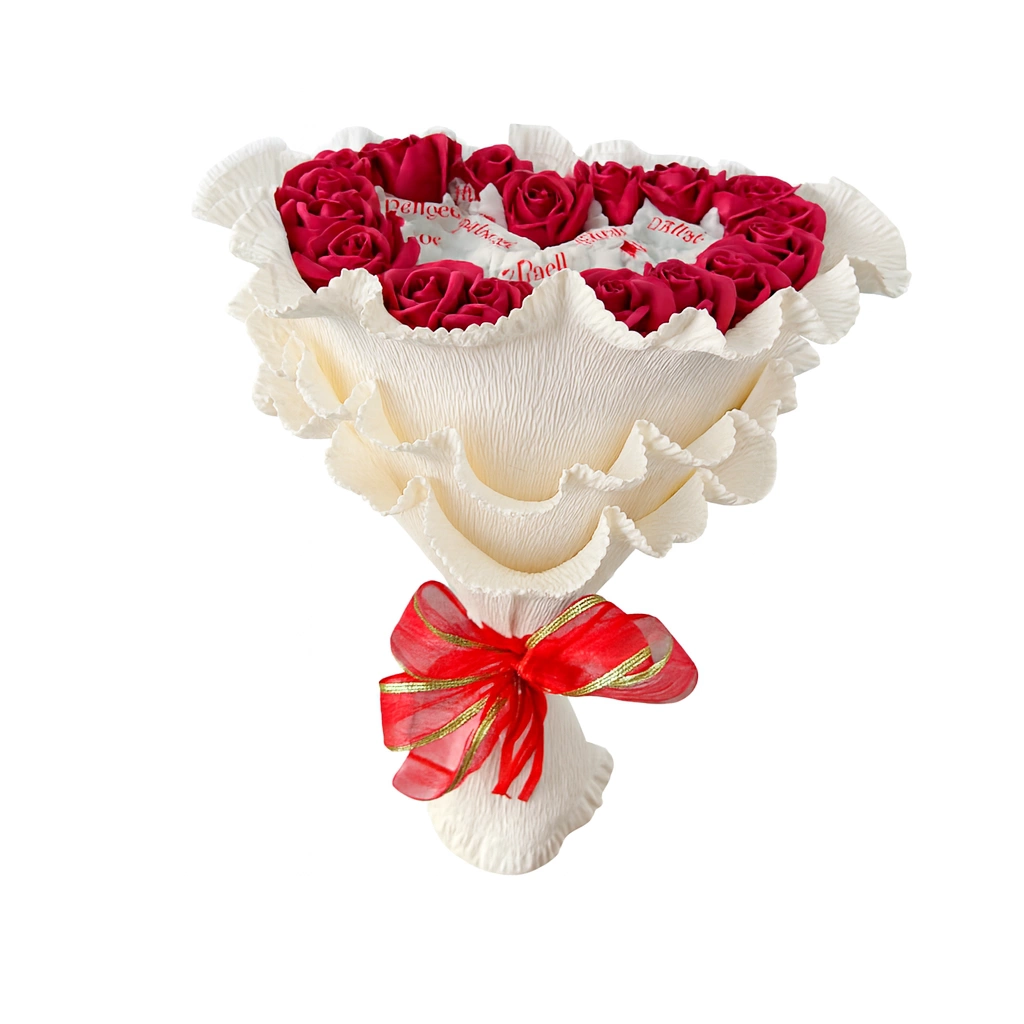 Ekskluzywny bukiet ze słodyczy Rafaello i kwiatów mydlanych – elegancja w czekoladowym wydaniu