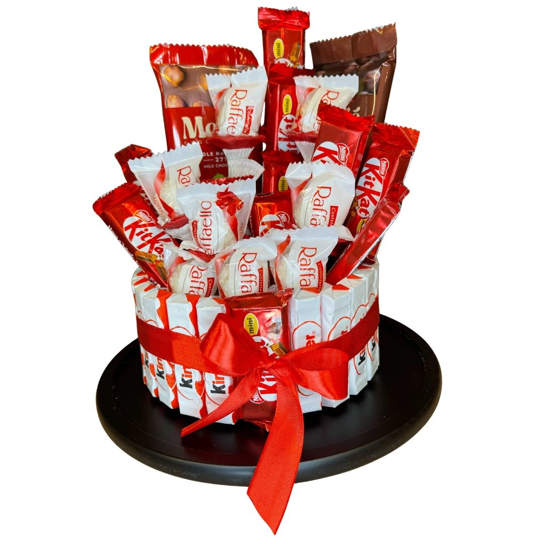 Słodki Upominek – Tort ze Słodyczy Merci/Rafaello/Ferrero rocher | Idealny Tort Kosz Prezentowy na Każdą Okazję